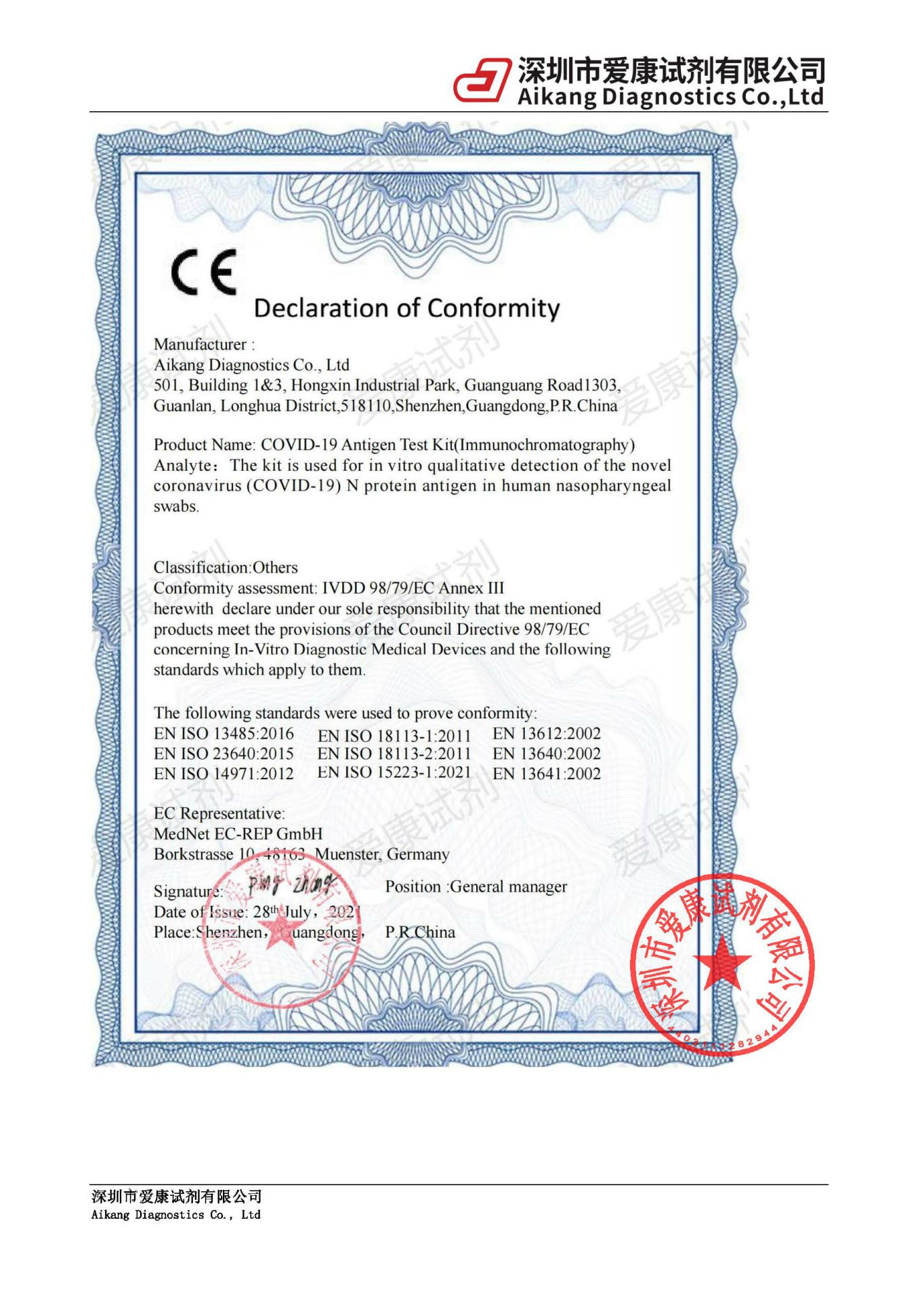 爱康试剂新冠试剂防伪声明